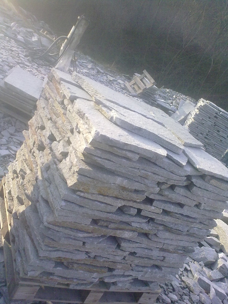 1) lose,pietra per realizzazione di tetti. il colore della pietra è grigio-misto.