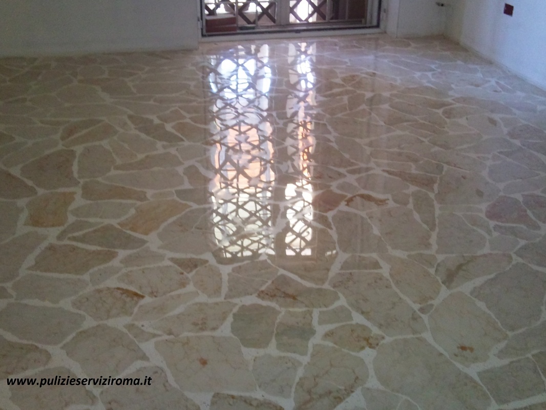 Lucidatura pavimenti: la fase finale darà la firma a un lavoro ben fatto negli step antecedenti e consiste nel portare il pavimento a lucido a specchio mediante determinati giri della macchina, feltri e polveri lucidanti.