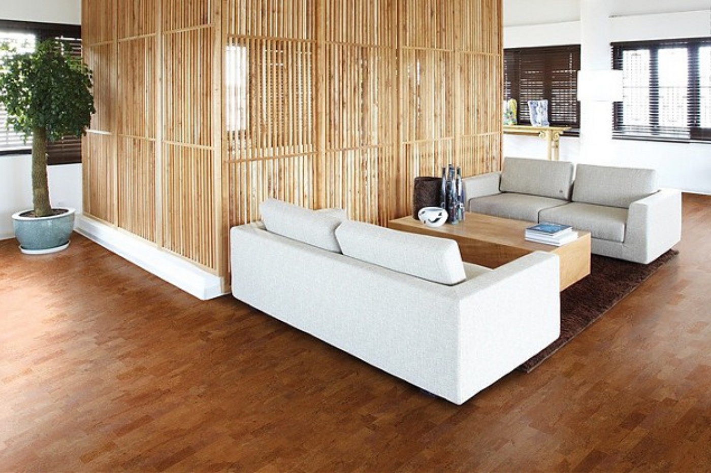 Pavimento stratificato in sughero naturale protetto da strato in PVC e vernice HPS a nanosfere. FL Versione Flottante