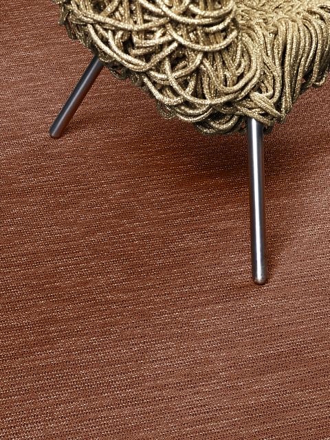 Tessuto vinilico ad effetto stuoia per pavimenti ad uso interno, con supporto in PVC e fibre di vetro.