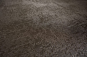 Tessuto vinilico ad effetto stuoia per pavimenti ad uso interno, con supporto in PVC e fibre di vetro.