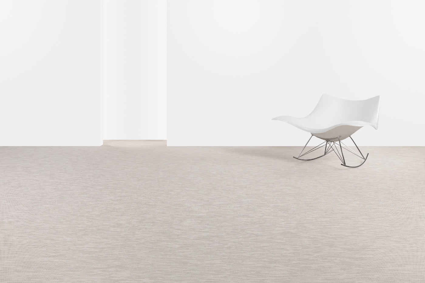 Tessuto vinilico ad effetto stuoia per pavimenti ad uso interno, con supporto in PVC e fibre di vetro.
