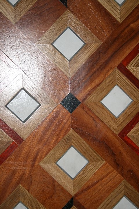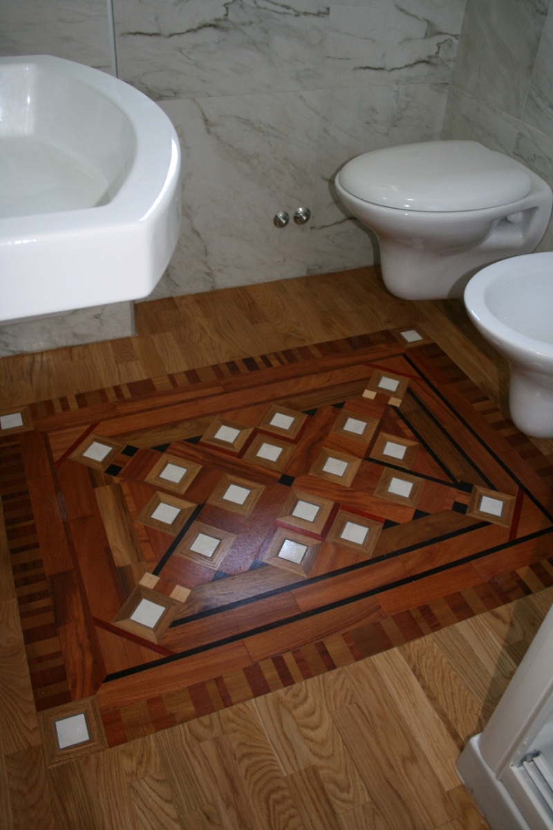 Inserti in marmo Carrara, ricavati dal rivestimento per potere abbinare il pavimento in