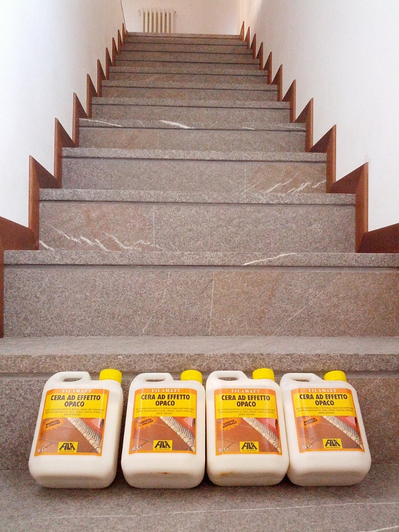 Pulizia e trattamento ad effetto naturale,eseguito su scale e pavimentazione in pietra piasentina.