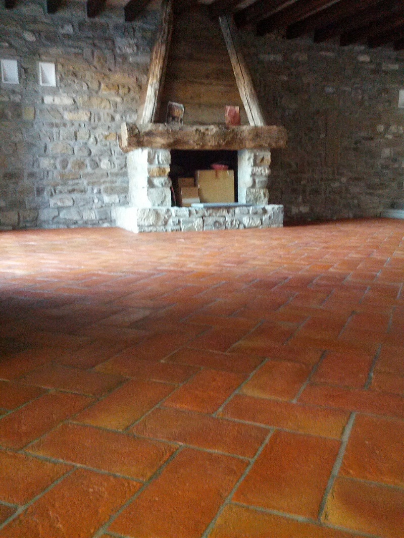 Trattamento protettivo a base di olio di lino crudo e cera d'api, applicato su cotto rustico della linea "Cristiani".
