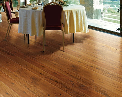 Esclusivi trattamenti della superficie come la morciatura realizzata a mano, tavola per tavola, con strumenti antichi e terre naturali.