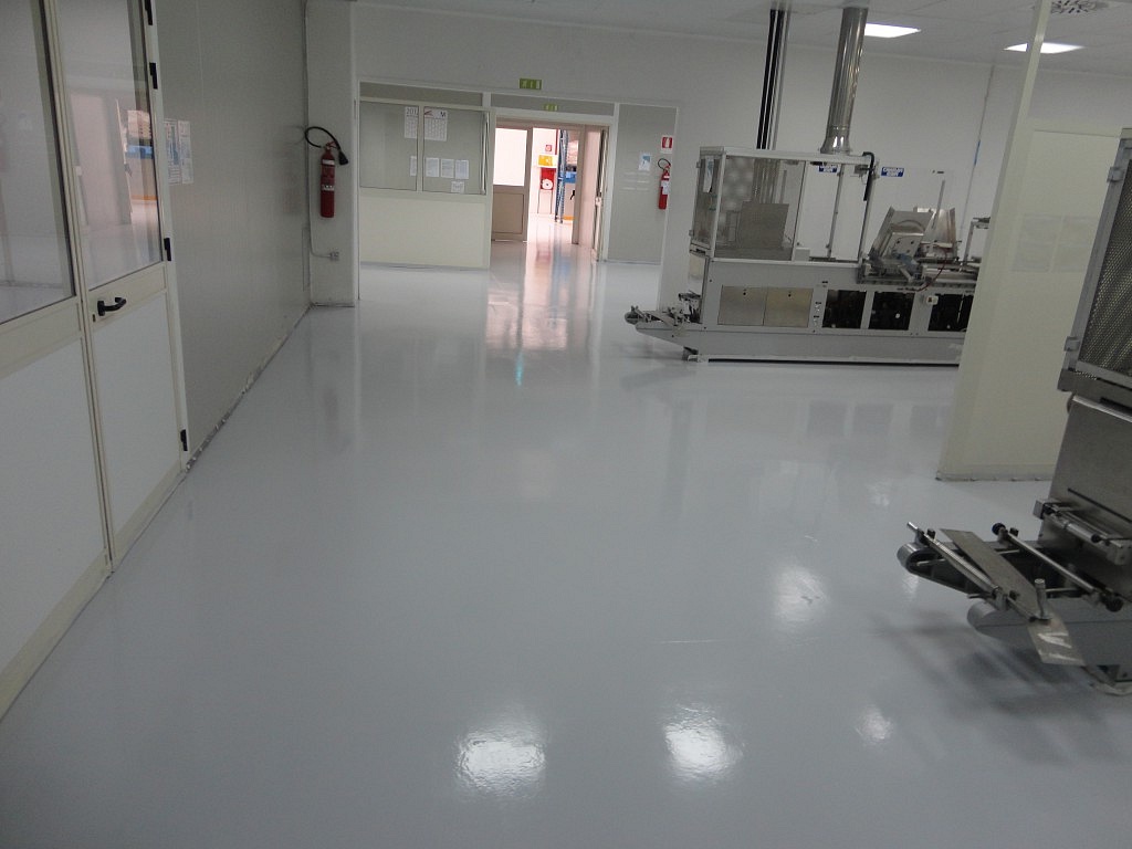 Pavimento multistrato in resina epossidica per industria farmaceutica certicata effetto monocromatico