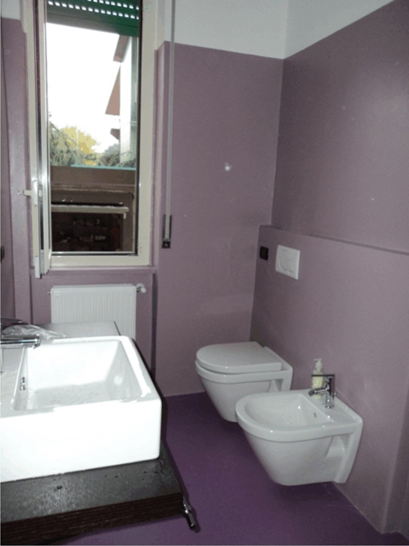 Bagno rivestito in resina epossidica e finitura con resina poliuretanica colorata.