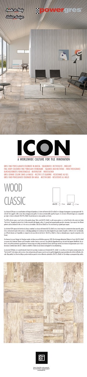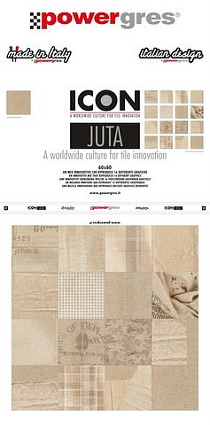 La Colelzione ICOn ha tre proposte grafiche ben distinte tra loro : CEM , WOOD ( Classic Wood e Aged Wood ) e YUTA . Yuta a sua volta e' disponibile nella versioen patchwork "Corchore " o normale non decorata " Oyama ".