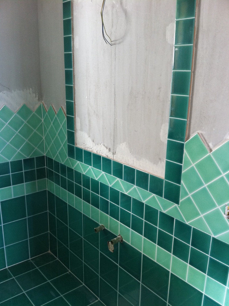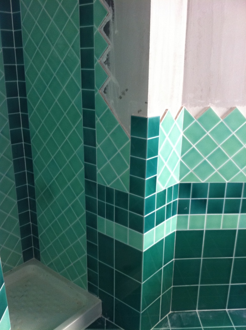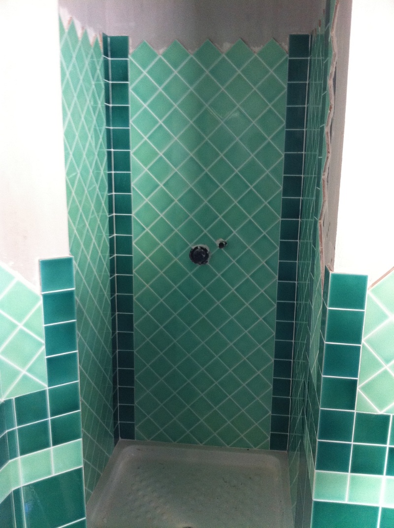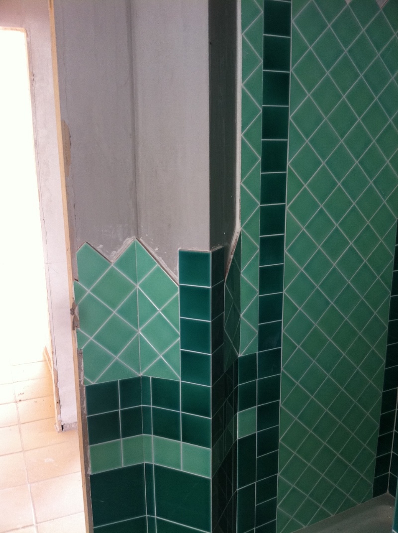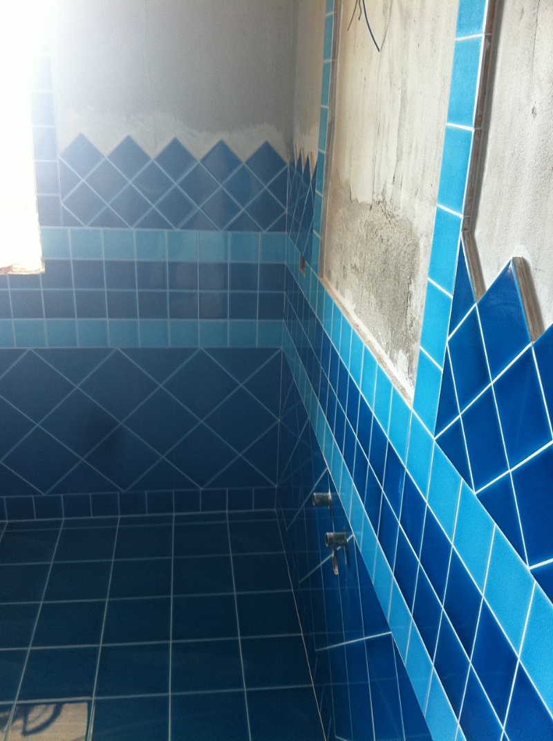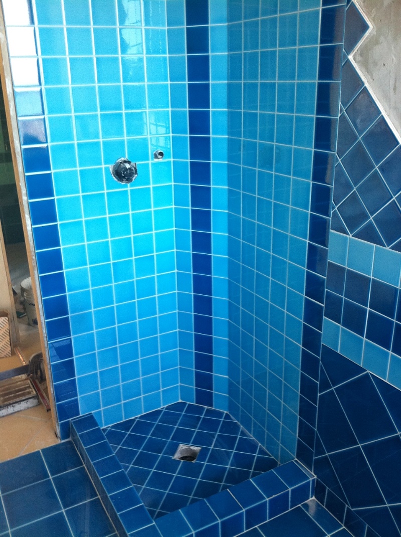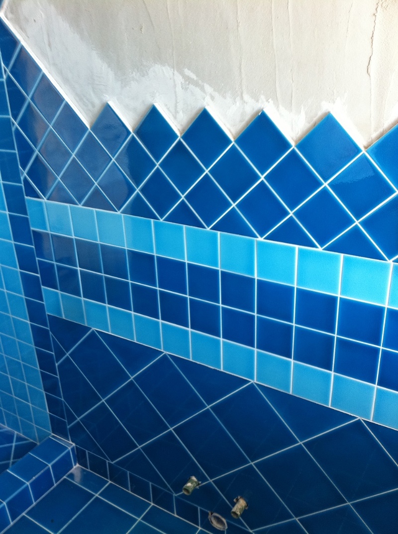 Posa in opera di rivestimenti 10x10 realizzati in un cantiere in Sardegna... posati con molta precisione e miscelazione nello schema di posa.