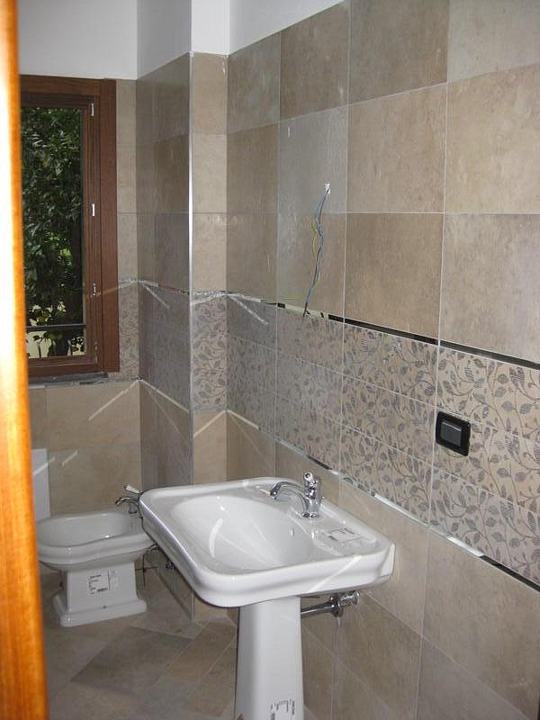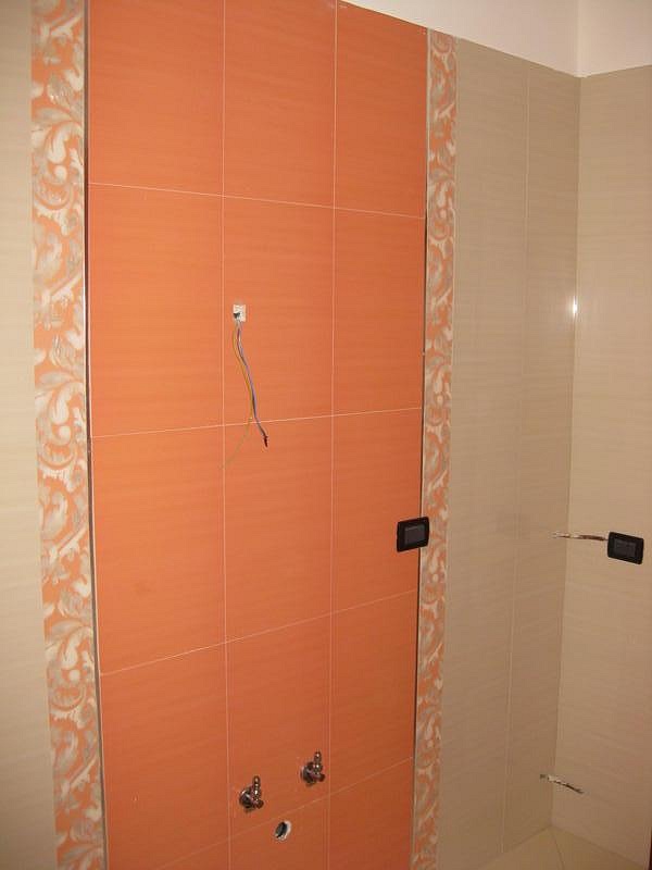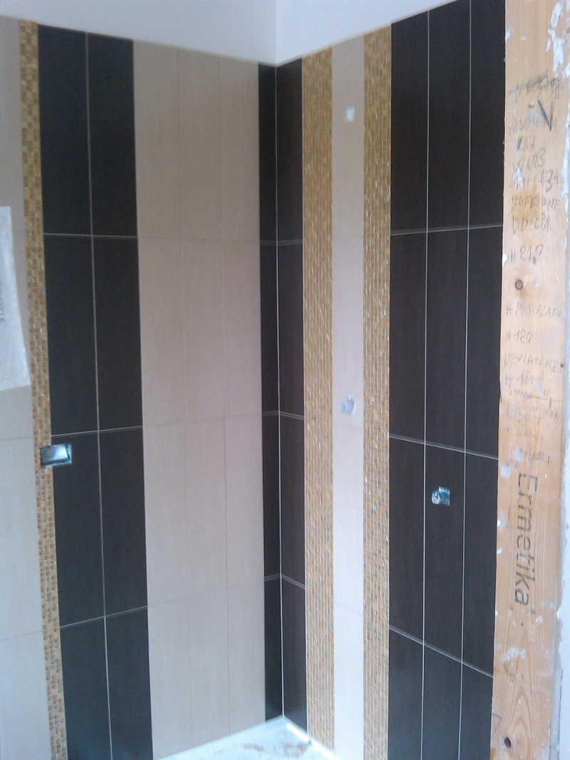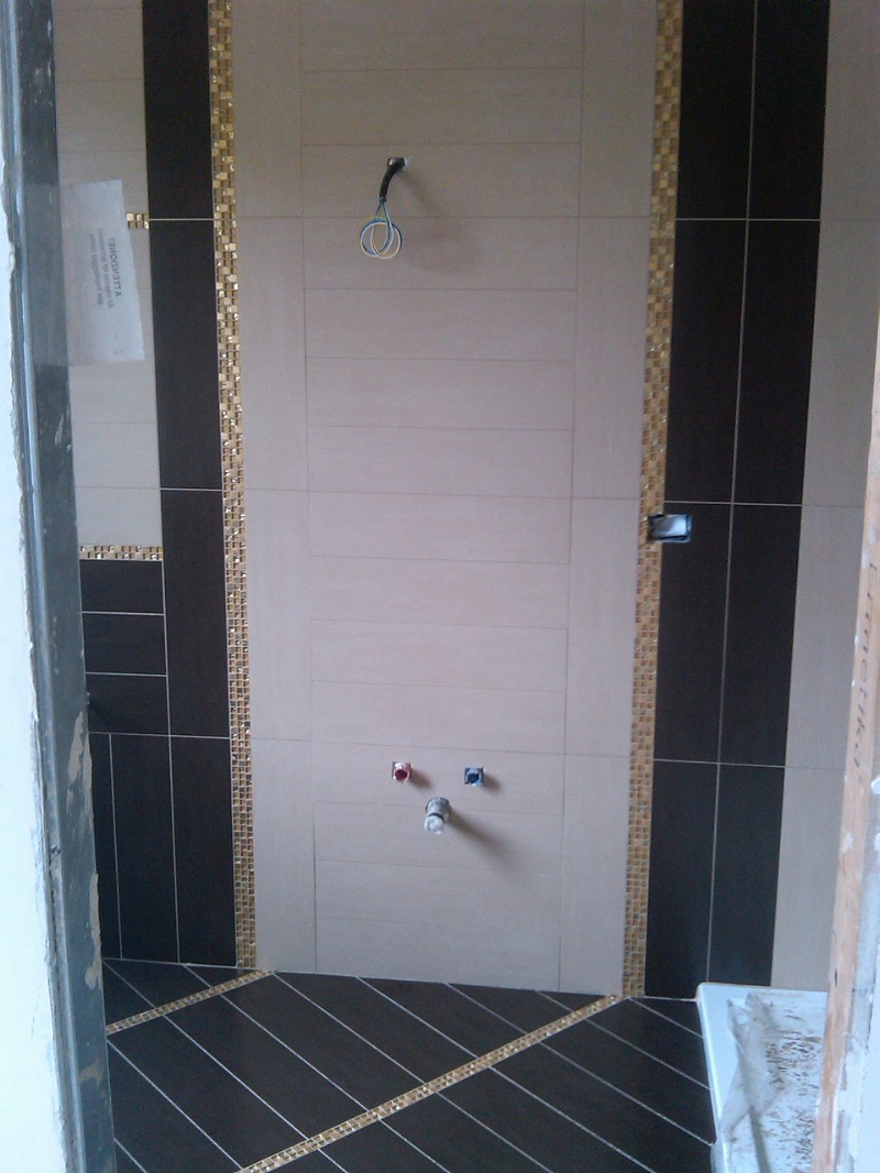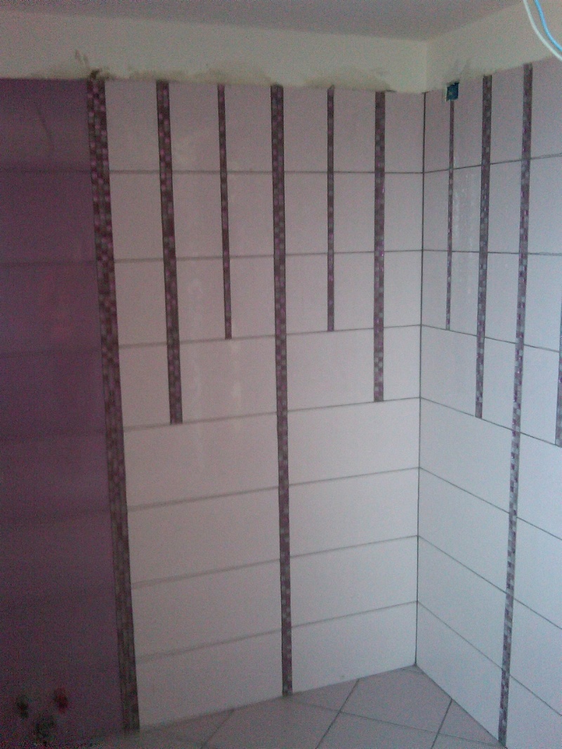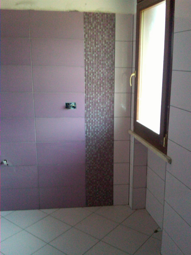 Posa in opera di un rivestimento semplice di ceramica con un inserimento di mosaici coordinati e selezionati per aumentare l'effetto elegante di un bagno...