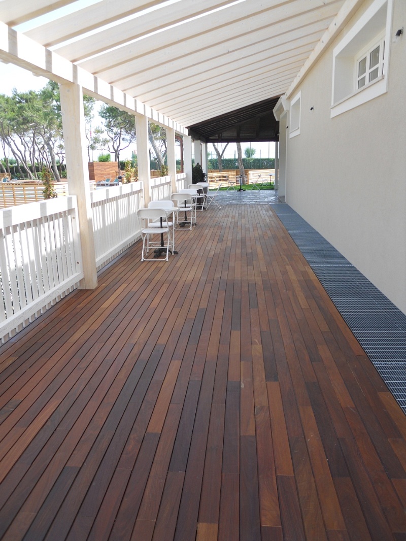 È la specie legnosa più utilizzata al mondo nel Decking e si presta ad ambienti di piccole/medie o grandi dimensioni, soggetti a bassa/alta frequenza di calpestio e per una destinazione d’uso in situazioni private, pubbliche, commerciali e marittime. Le sue caratteristiche e proprietà lo rendono idoneo anche per il rivestimento di edifici.