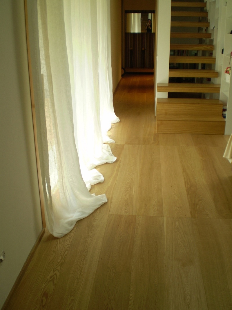 Tavolati di rovere, 4 mm legno nobile,3 strati, controilanciati in abete, bisellato, spazzolato, in scelta unica per il formato 280 - 300, in prima scelta con qualche nodino per il formato 240-260